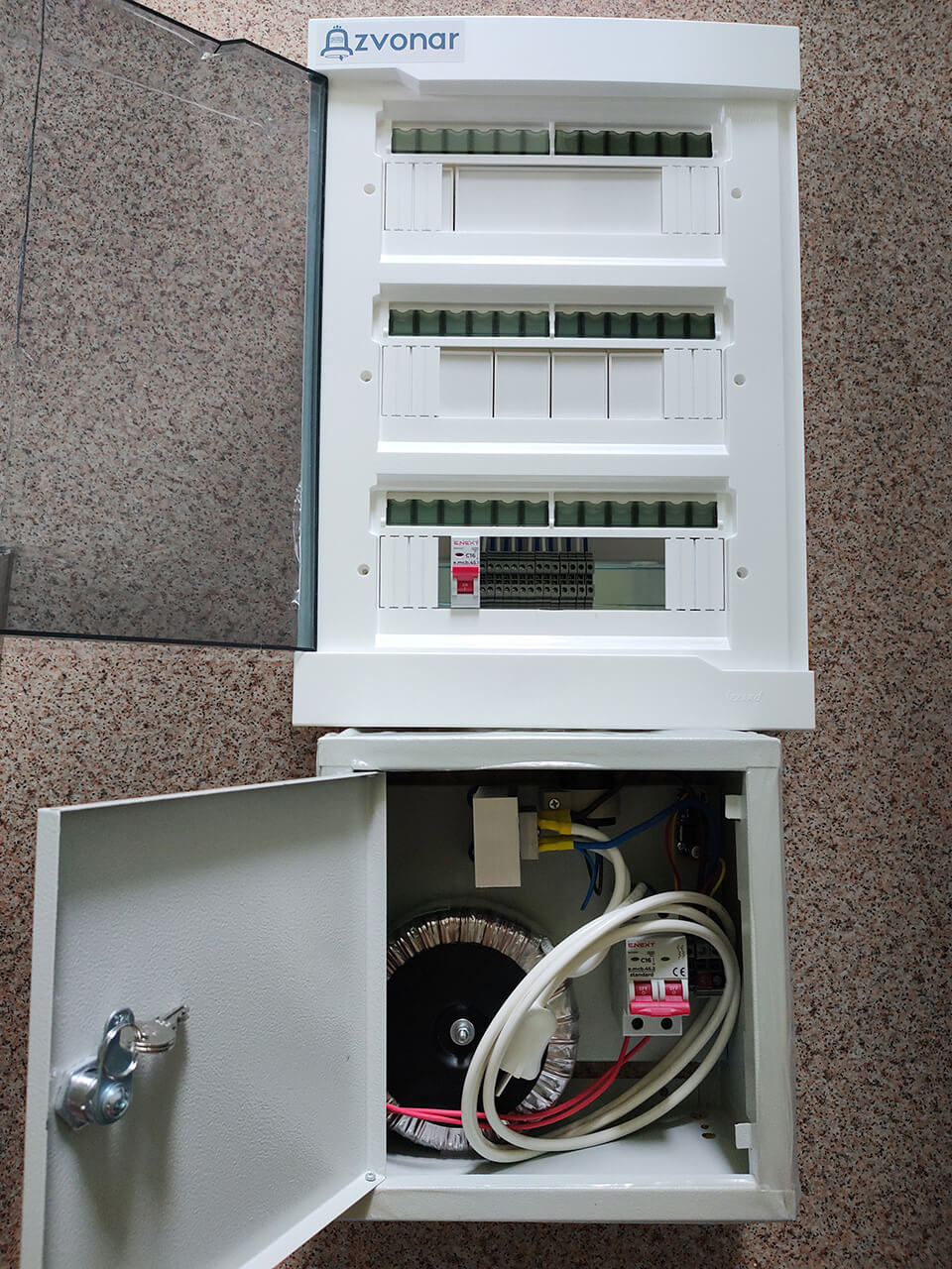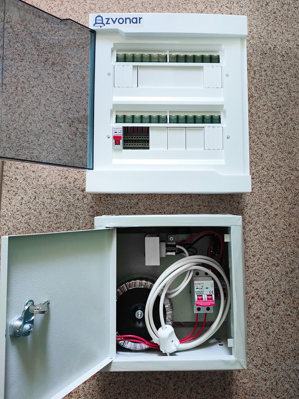Церковь в Болгарии, 5 колоколов, 2024. Адаптировали нашу систему для управления электромагнитными ударниками, как на втором фото. Они управлялись автоматикой, которая теперь вышла из строя и была заменена нашей. Църква в България, 5 камбани, Електронен звънец: