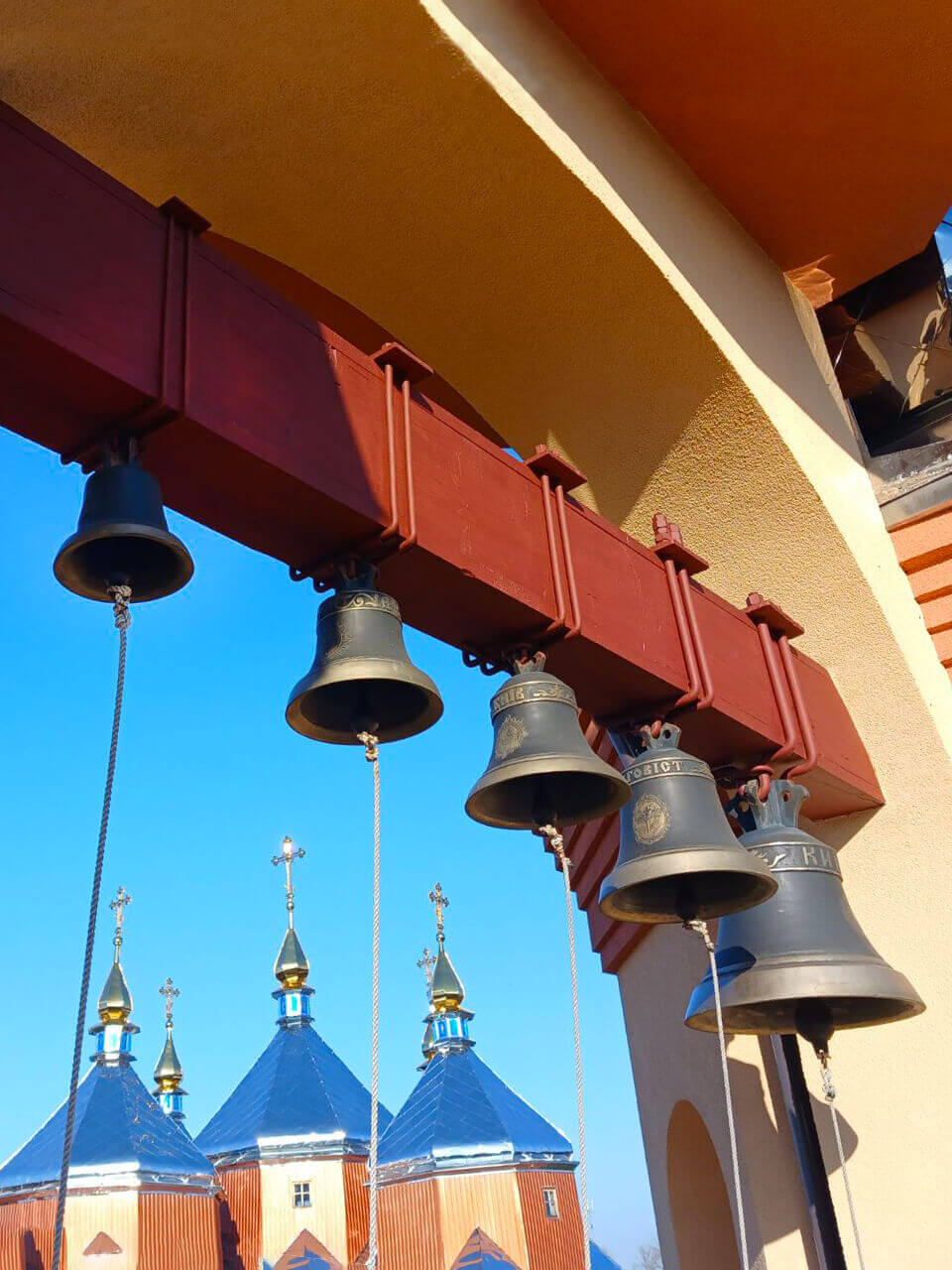 Храм Успения Пресвятой Богородицы г. Тернополь, 7 бронзовых колоколов от 8 до 400 кг. Пока что в церкви 5 колоколов с наименьшим весом в 29 кг. Два самых легких планируют докупить позже:
